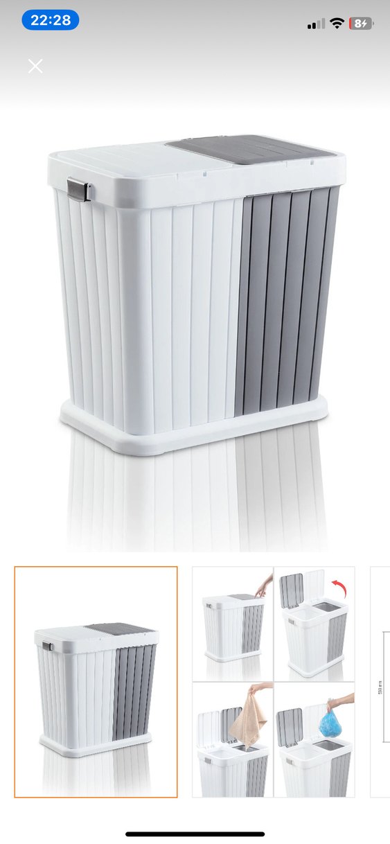 Gri ve beyaz renkli saklama kutusu, menteşeli kapak ve yan kulplar ile kolay taşınabilir. Çok amaçlı kullanım için uygundur.