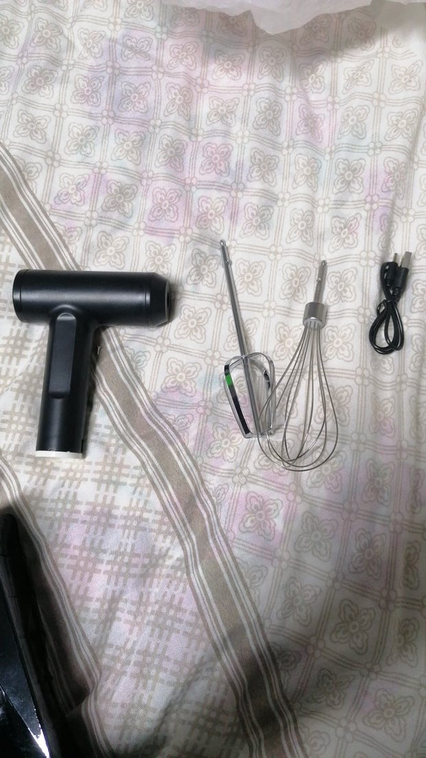 Gri ve beyaz renklerde çok fonksiyonlu cihazı, elde tutulan ünite, iki metal aparat ve USB şarj kablosu içerir. ⚙️