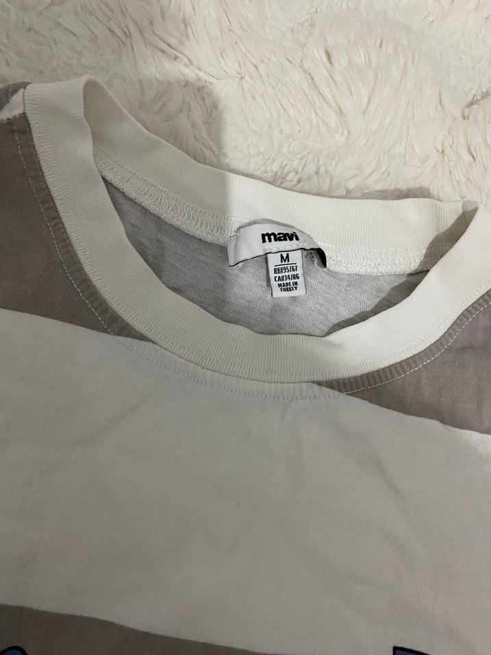 Pamuk kumaştan, bisiklet yaka ve kısa kollu, bol kesimli hamile tişörtü. Günlük kullanıma uygun rahat ve baskılı tasarım.