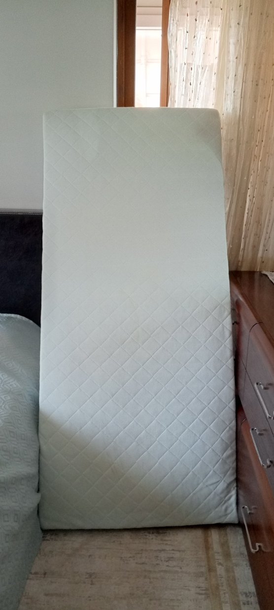 Gri ve beyaz renkte, desen içermeyen ve konfor için kapitone dokulu yatak ıkea marka tertemiz çok az kullanıldı