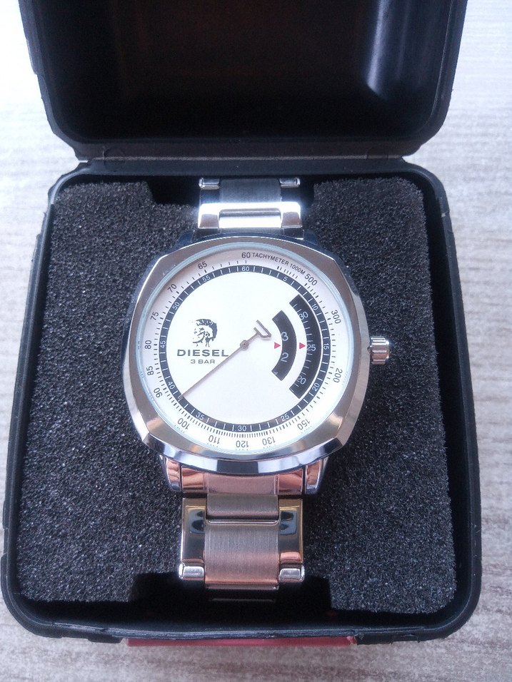 Diesel markalı gri beyaz renkli, metal kayışlı erkek iş saatidir. İş ve biker tarzını birleştirir, 3 bar su geçirmezlik özelliği vardır. ⌚