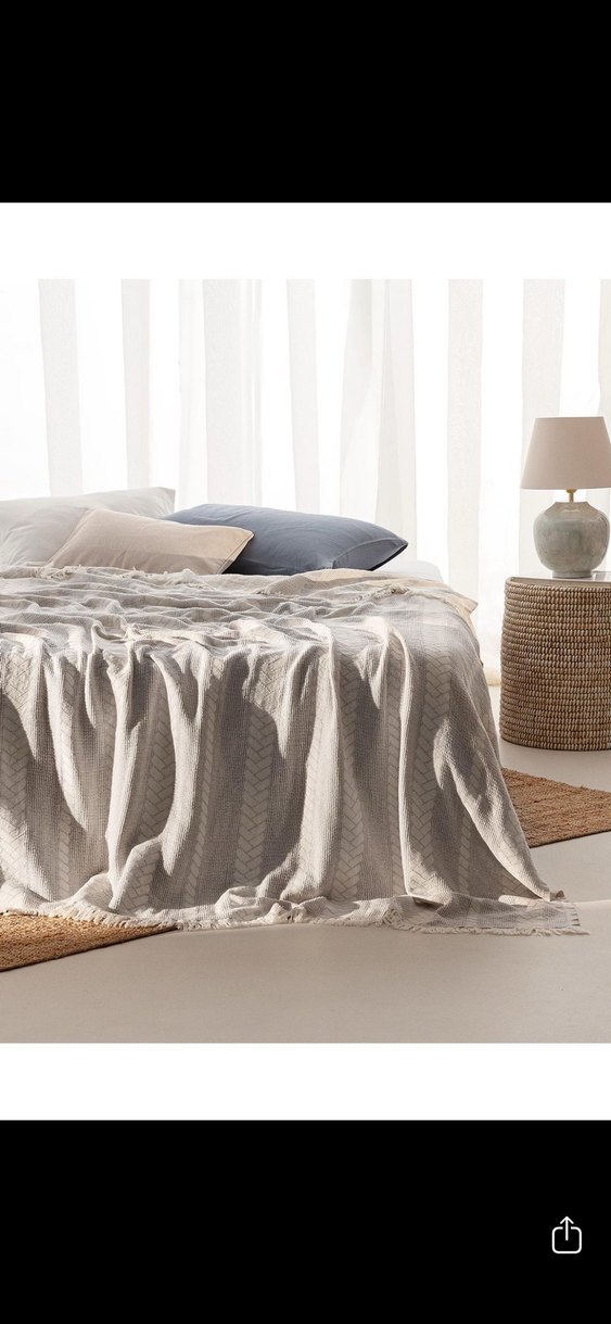 Gri ve beyaz renklerde, dokulu ve desensiz çift kişilik yatak örtüsü. Yatak odasına sade ve rahat bir hava katar. Pike olarak da kullanılabilir sadece bir kez kullandım ürün temizdir bende fazla olduğu için satıyorum