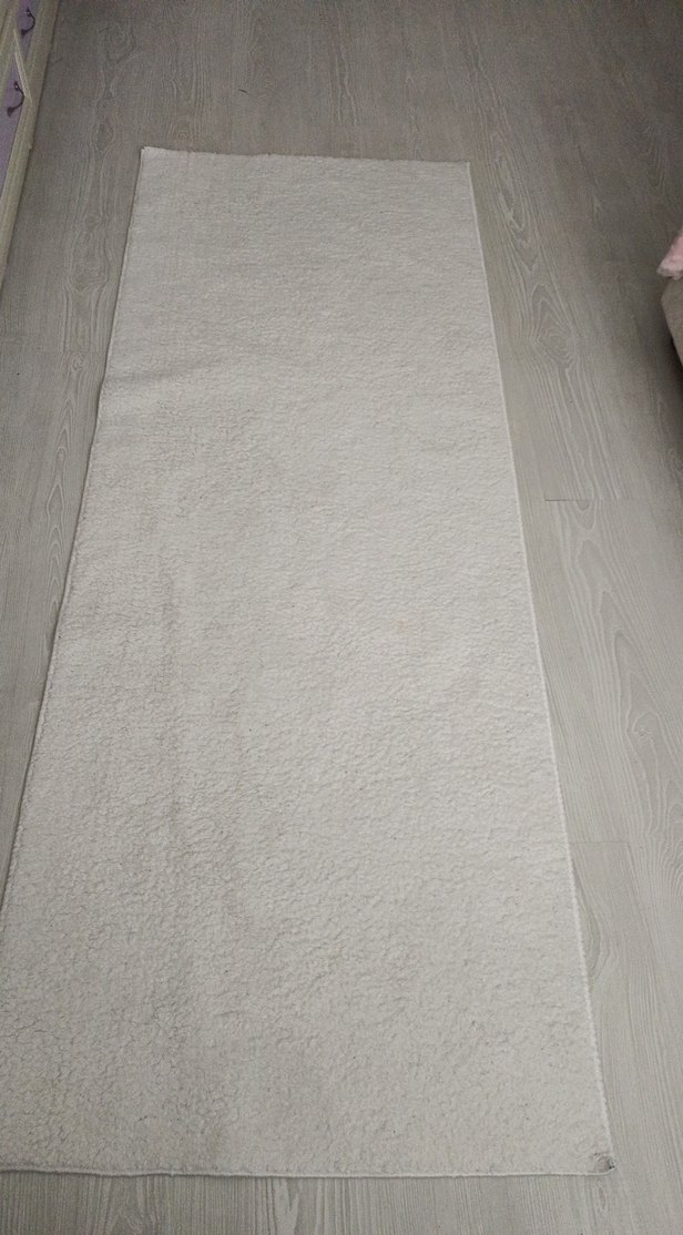 Gri beyaz renkte, düz ve yumuşak dokulu konvansiyonel tarzda halı, mekana sade ve şık bir hava katar. makinada yıkanır boy2/en80