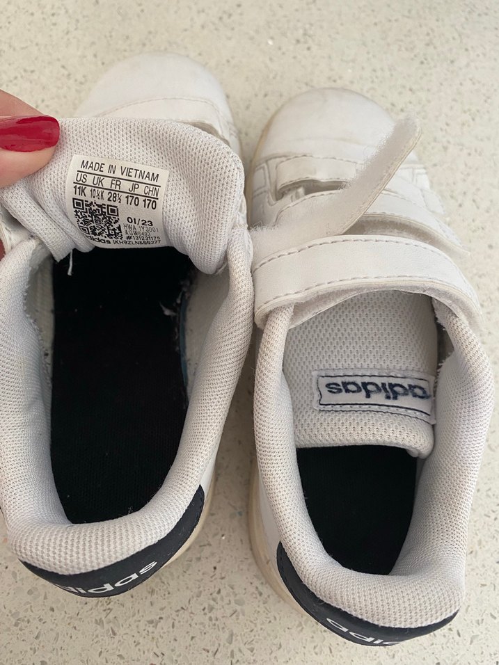 Beyaz ve gri renklerde, kaymaz tabanlı, cırt cırtlı erkek çocuk spor ayakkabısı. Sokak stiline uygun, desensiz tasarım. İçi sağlam. Dışında kullanıma bağlı lekeler var. Çıkar mı bilmiyorum denemedim bu neden fiyatı uygun. Numara 28,5