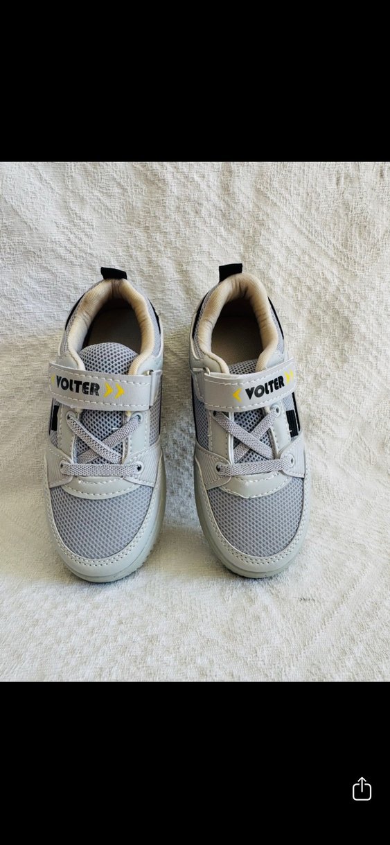 Beyaz ve gri renklerde, baskılı desenli Velcro bantlı erkek çocuk spor ayakkabısı. Kauçuk malzemeden, trend sokak stili için uygun. VOITER marka.