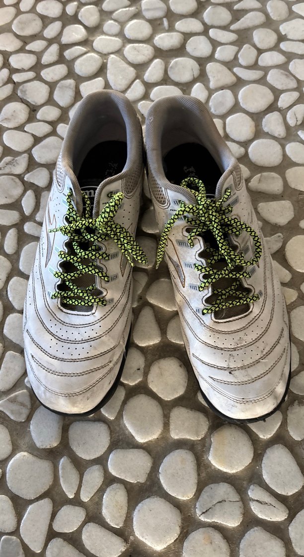 Gri ve beyaz renkte, athleisure ve streetwear tarzına uygun erkek spor ayakkabı bağcığıdır. Günlük spor ayakkabılara uyum sağlar. Hiç bir kusuru yok, bağcıkları özel , 45 numara .