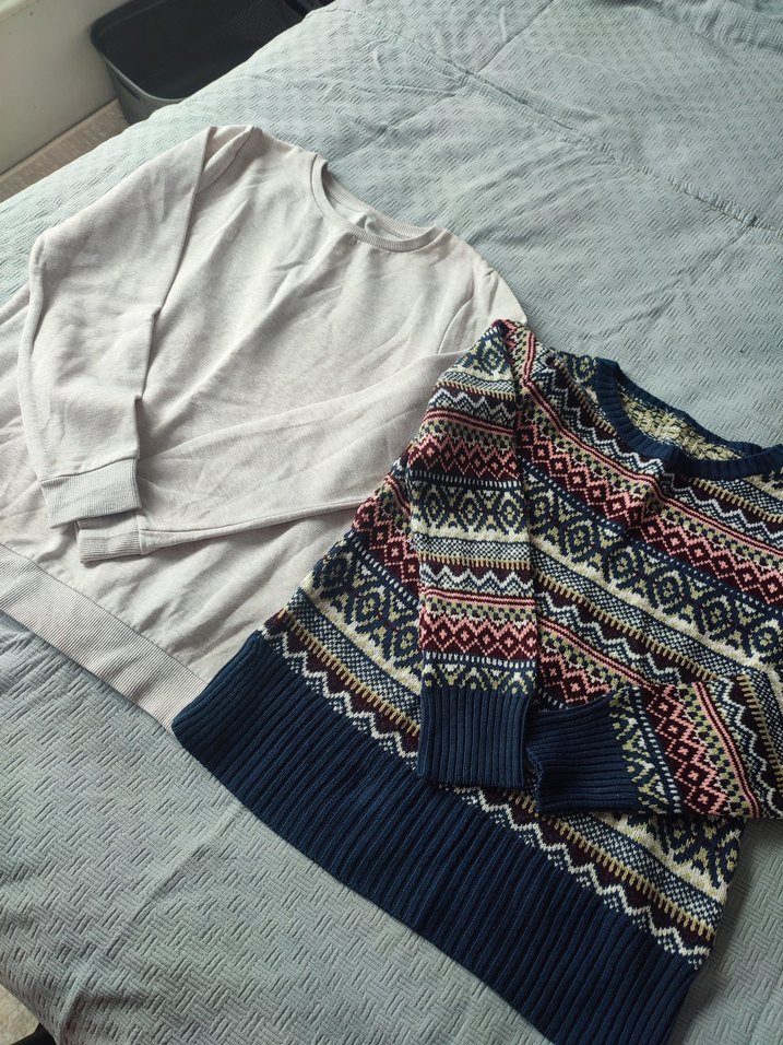 Bu erkek kazağı, pamuklu kumaştan üretilmiş, bol kesim ve uzun kolludur. Normal boyda, düz ve gri-beyaz renkte, gündelik rahat kullanım için uygundur.