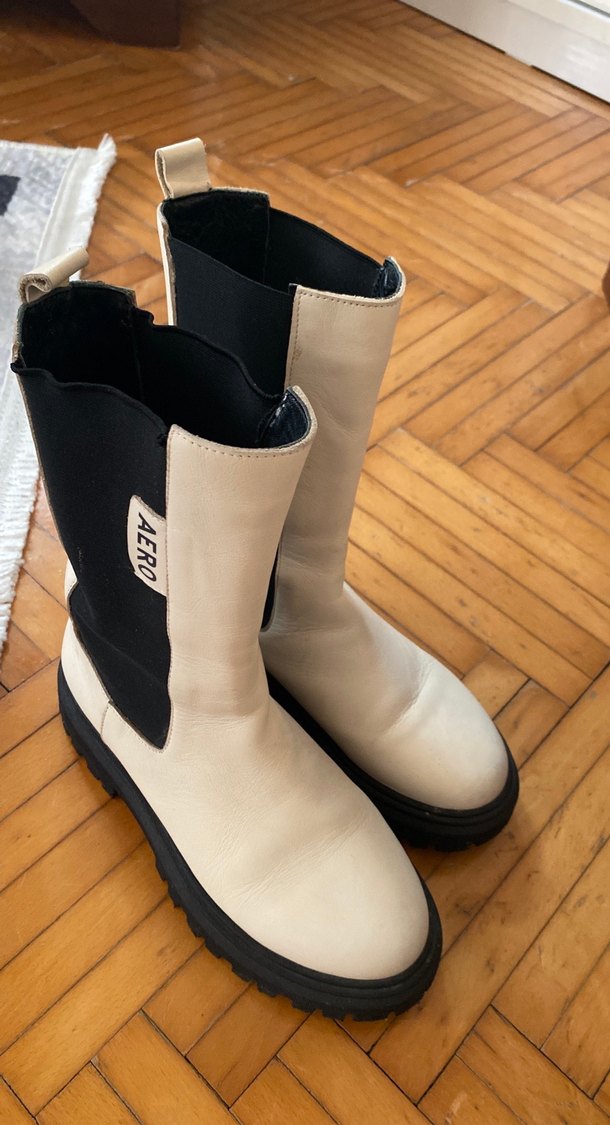 Gri ve beyaz tonlarda, lastik malzemeden, blok topuklu ve cırt cırtlı kadın günlük street style botlar.