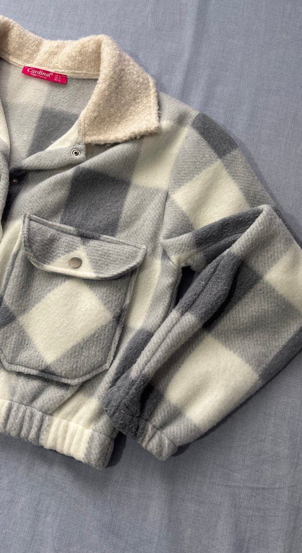 Gri-beyaz Kareli Düğmeli gömlek Ceket