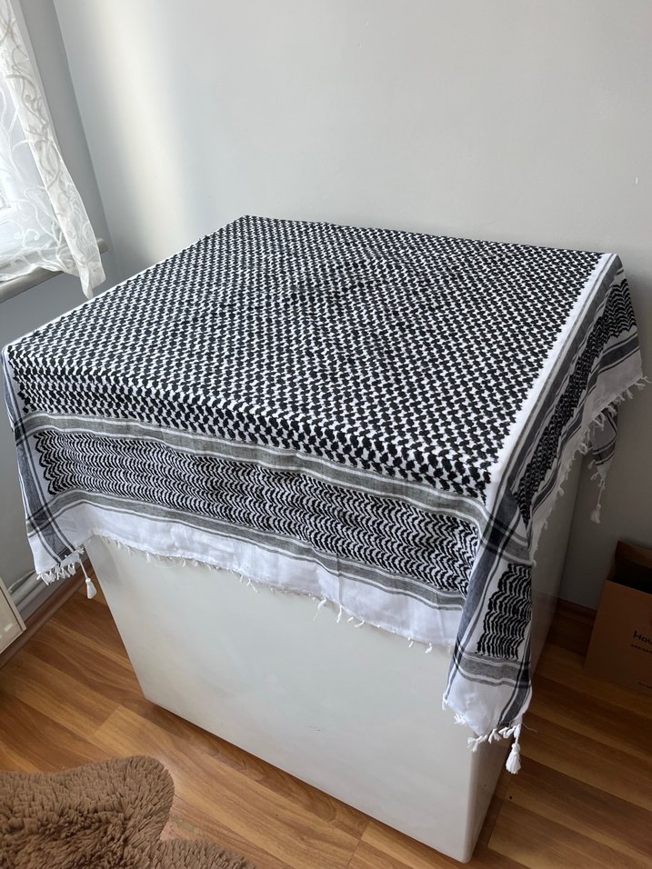 Gri ve beyaz kareli desenli, püsküllü klasik masa örtüsü, masanıza sade bir dokunuş katar. puşi/fular olarakta kullanılır
