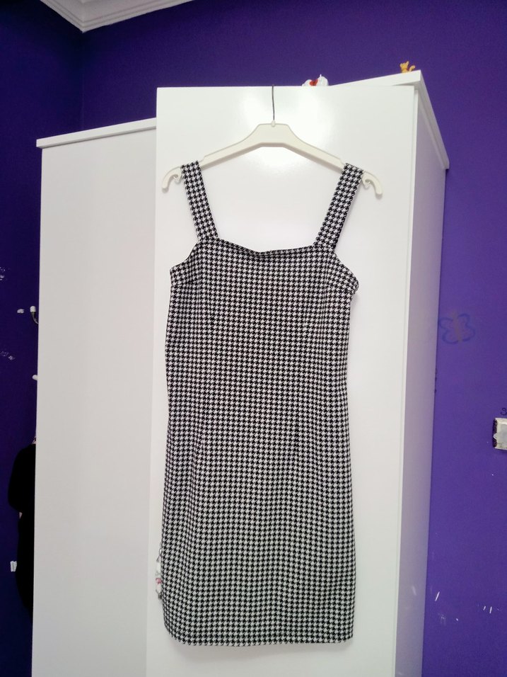 Gri Beyaz Kareli Midi Elbise