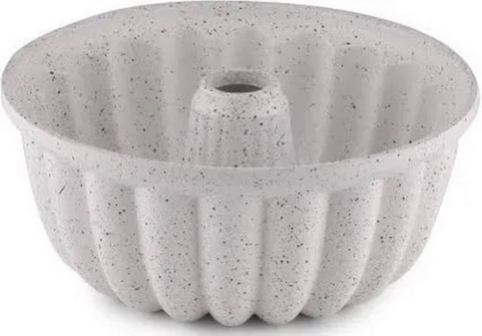 Gri beyaz, benekli desenli klasik şekilli kek kalıbı.