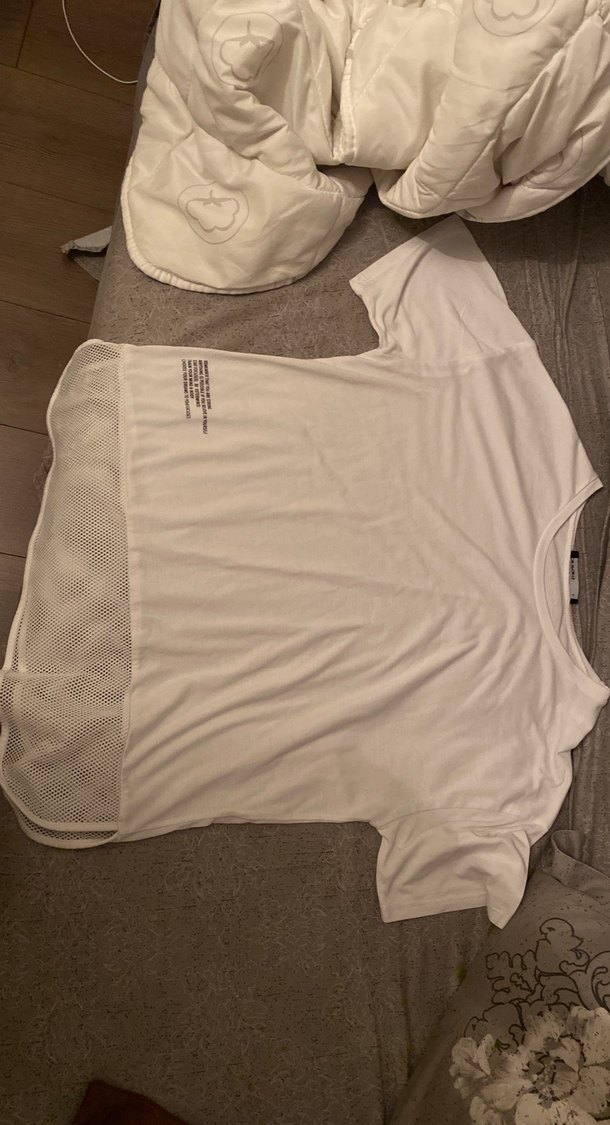 Keten kumaştan, kısa kollu ve bisiklet yaka, bol kesim hamile tişörtü. Normal midi boyutta, alt kısmında file detaylı, rahat günlük kullanım için uygun.