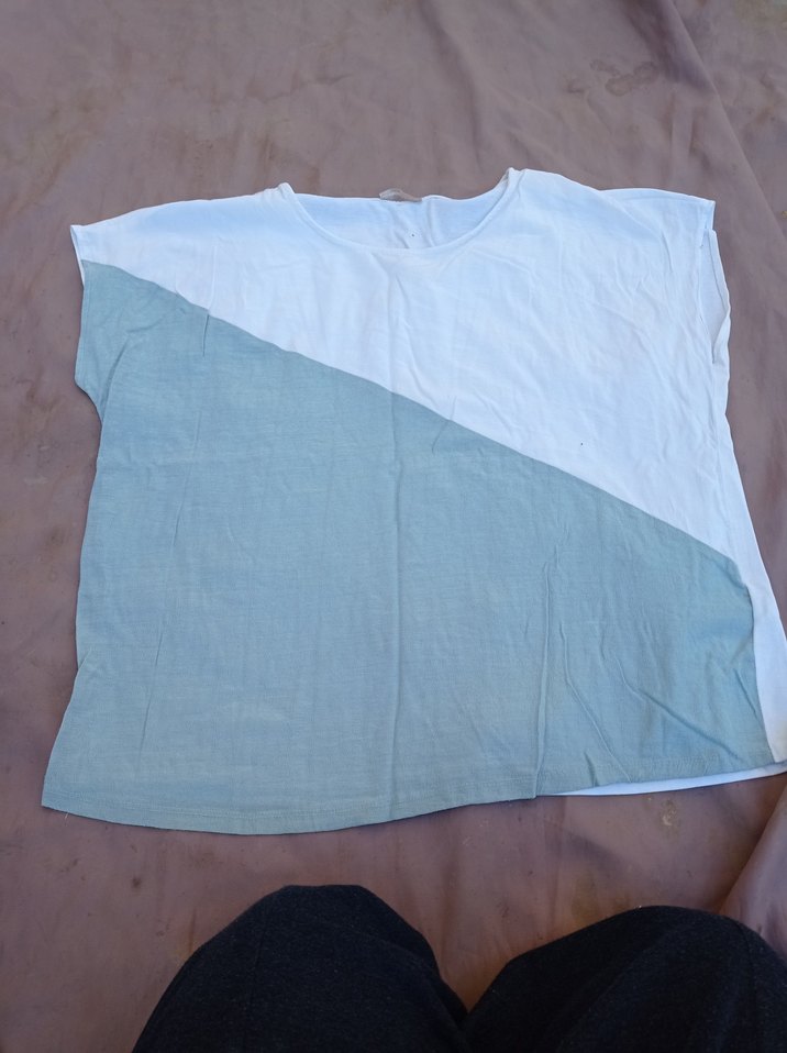Yumuşak keten kumaştan, kısa kollu ve bisiklet yaka, bol kesim hamile tişörtü. Gri ve beyaz iki tonlu tasarımıyla günlük rahat stil sunar.