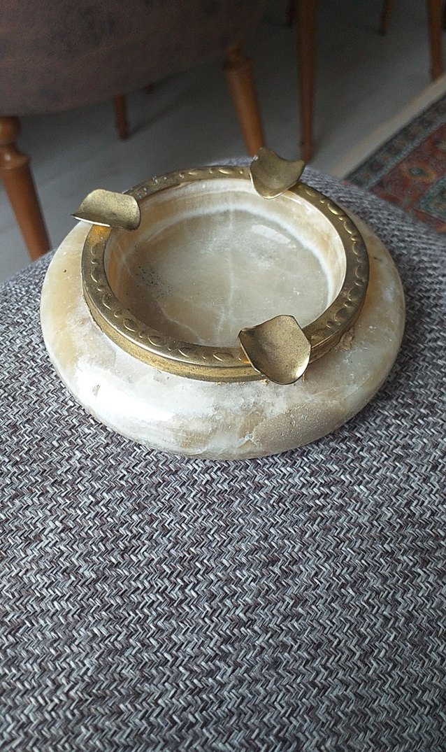 Gri ve beyaz mermerden yapılmış, desen içermeyen klasik tarzda bir küllük. Üzerinde pirinçten yapılmış sigara tutucuları bulunur.