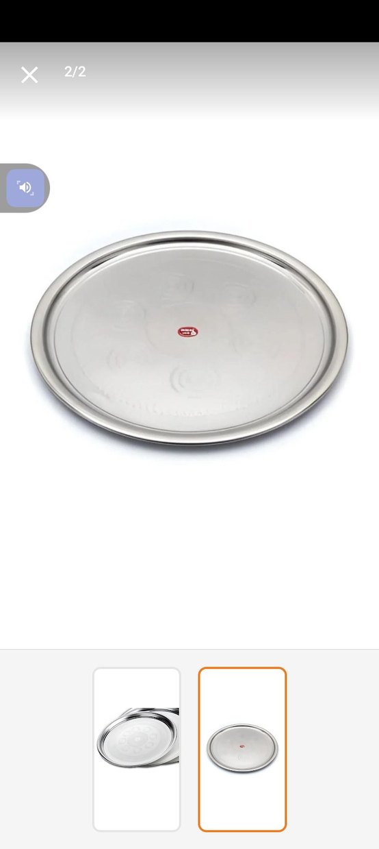 Gri ve beyaz tonlarda, desensiz, yuvarlak metal tepsi. Basit ve kullanışlı tasarıma sahiptir. ️