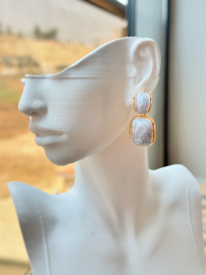 Gri Beyaz Mini Bağlama Desenli Küpeler