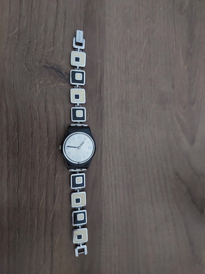Gri ve beyaz kare detaylı, tokalı bilekliği olan minimalist ve çağdaş tasarıma sahip kadın kol saati. Temiz beyaz kadran ile sade bir görünüm sunar. ⌚
