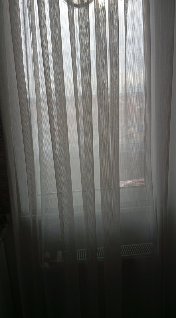 Gri beyaz tonlarında şeffaf kumaştan yapılmış modern tül perde, odaya yumuşak ışık sağlar. Desensiz sade tasarımıyla şık bir görünüm sunar. ️