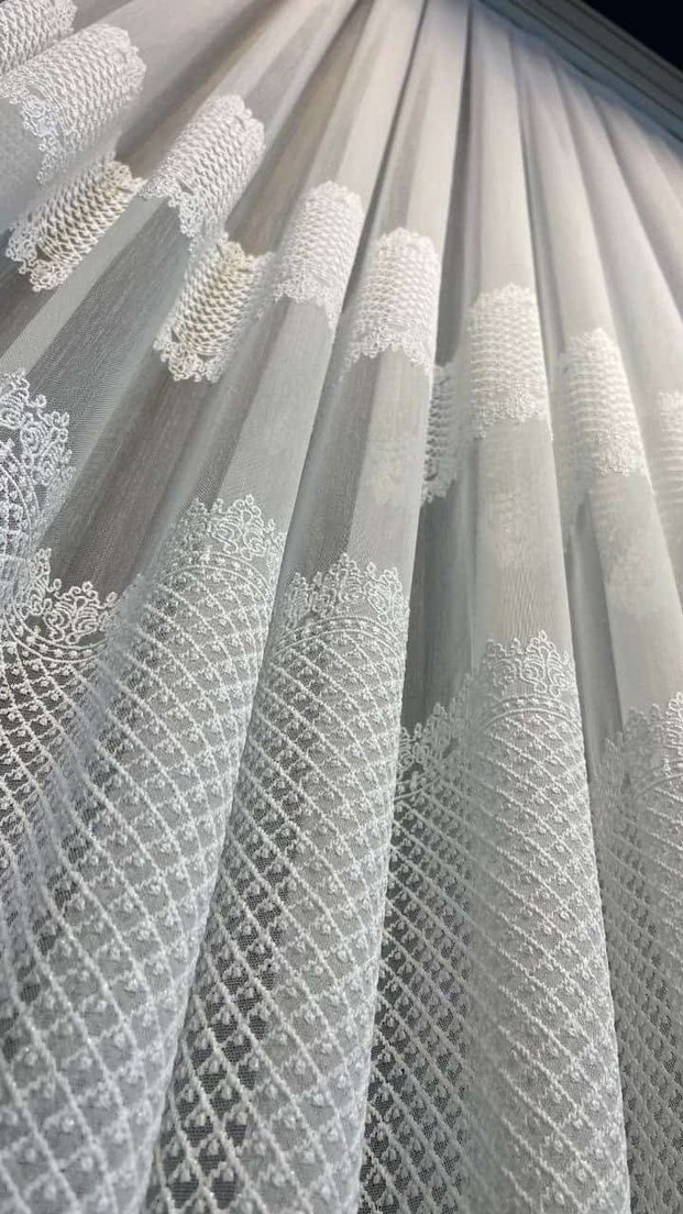 Gri zemin üzerinde beyaz nakışlı desenlere sahip, klasik ve şık görünümlü perde. Hafif ve şeffaf kumaştan üretilmiştir, ışık geçirir ve mahremiyet sağlar. metre fiyatıdır. istediğiniz ölçüler dikilip kargoya verilir
