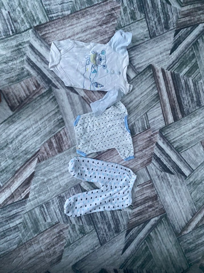 Pamuklu, örgü dokulu uzun kollu boğazlı üst ve desenli pantolondan oluşan gri beyaz bebek takımı. Rahat ve günlük kullanıma uygun.