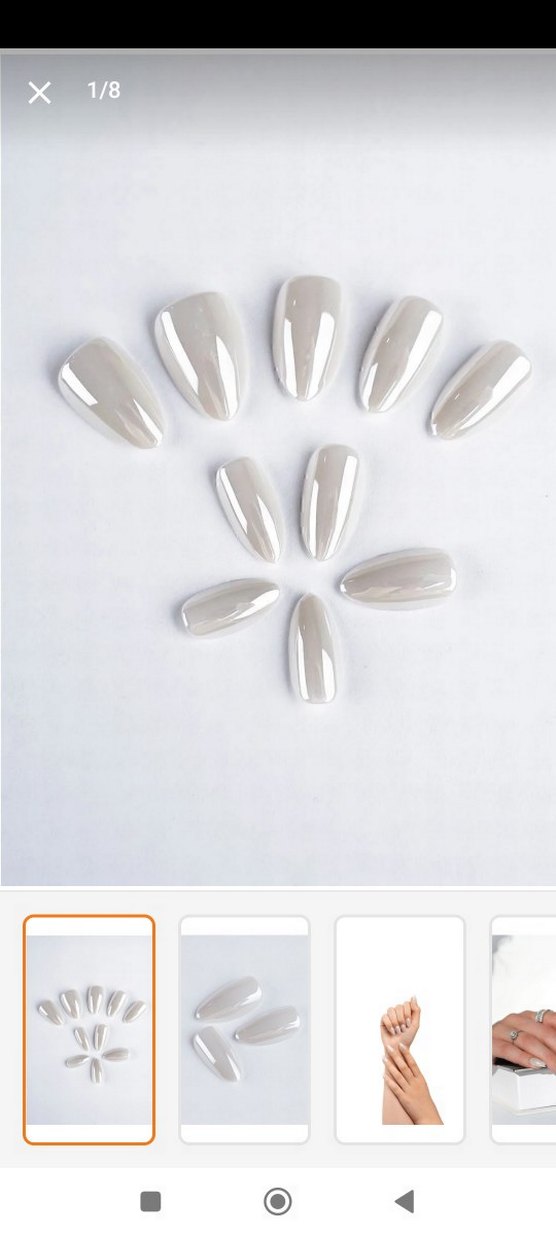Parlak ve hafif gri tonlu beyaz takma tırnak seti, şık ve pürüzsüz bir görünüm sağlar. hiç kullanılmadı
