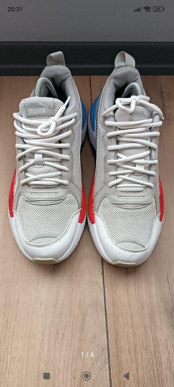 Gri ve beyaz tonlarda, bağcıklı tasarıma sahip Puma kadın spor ayakkabısı. İnce topuklu, dayanıklı kauçuk tabanlı, spor ve sokak stilini bir arada sunar. Tertemiz durumda.