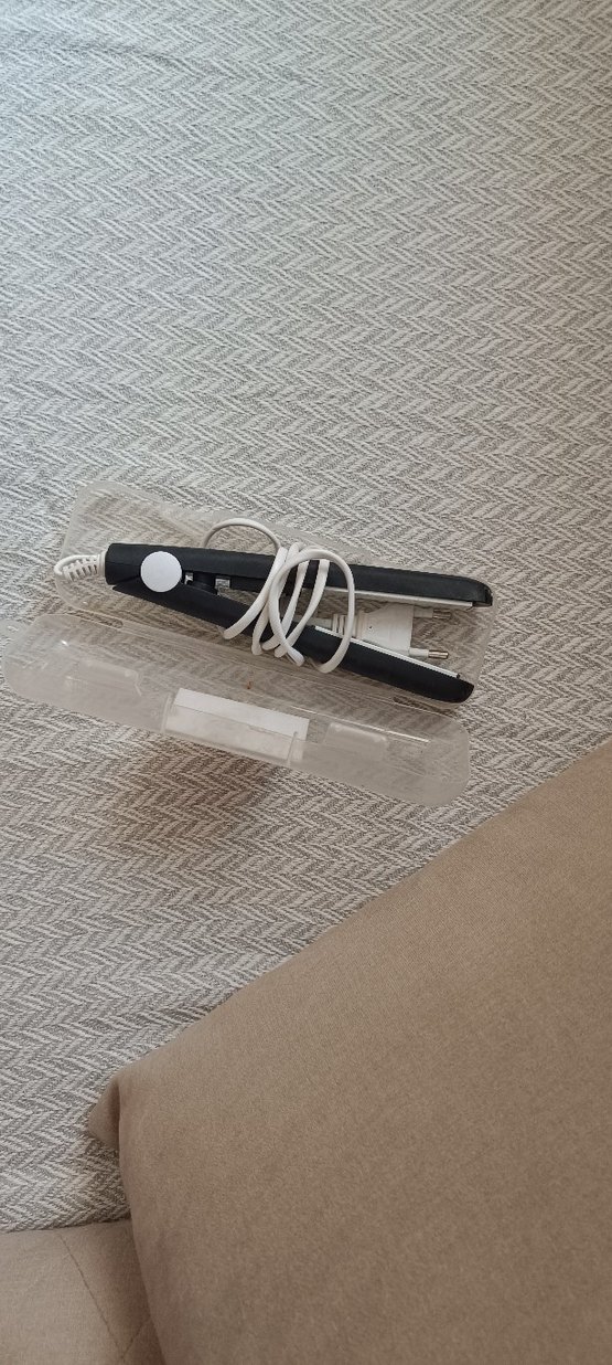 Gri ve beyaz renkli, kompakt boyutta saç düzleştirici. Şeffaf plastik koruyucu kutu ile birlikte. ✨çanta boy sadece bir kez kullandım
