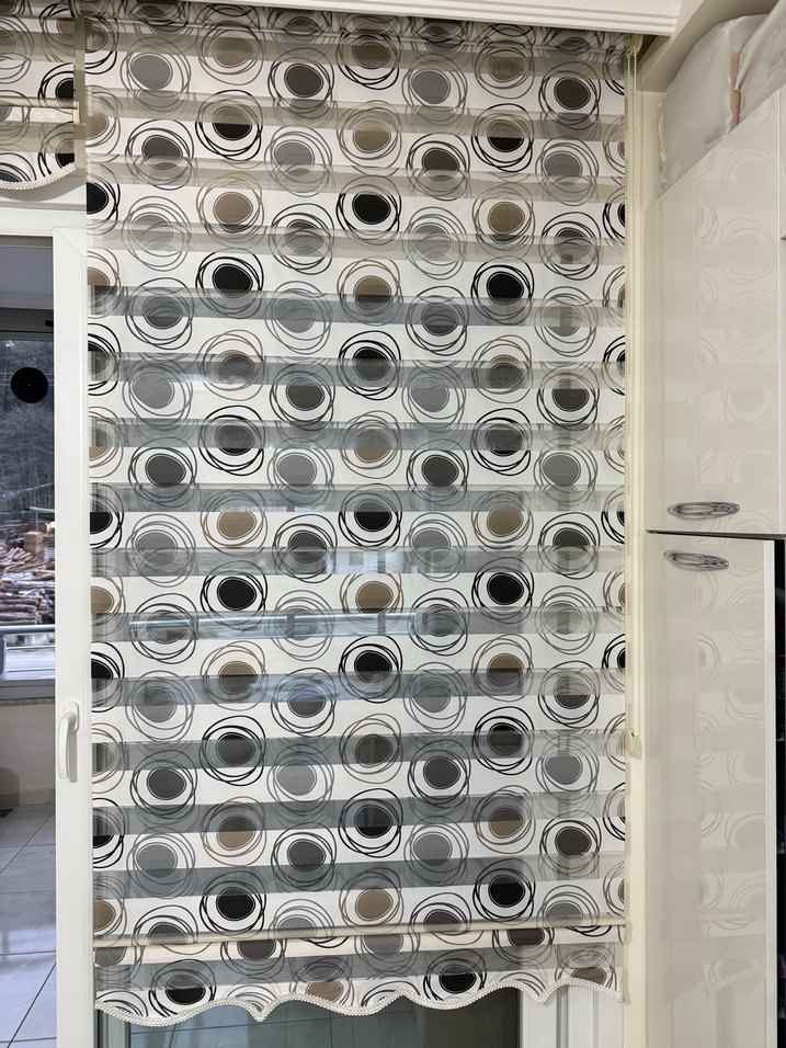 Gri Beyaz siyah Soyut Desenli Modern zebra Perde
