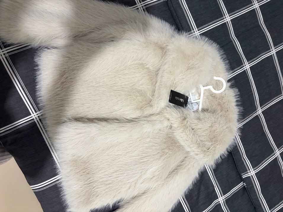 Gri beyaz tonlarında, yumuşak sentetik kumaştan suni kürk detaylı, normal uzunlukta ve dar kesim midi ceket. Notlu yaka ve uzun kolludur. Sokak modasına uygun. ❄️