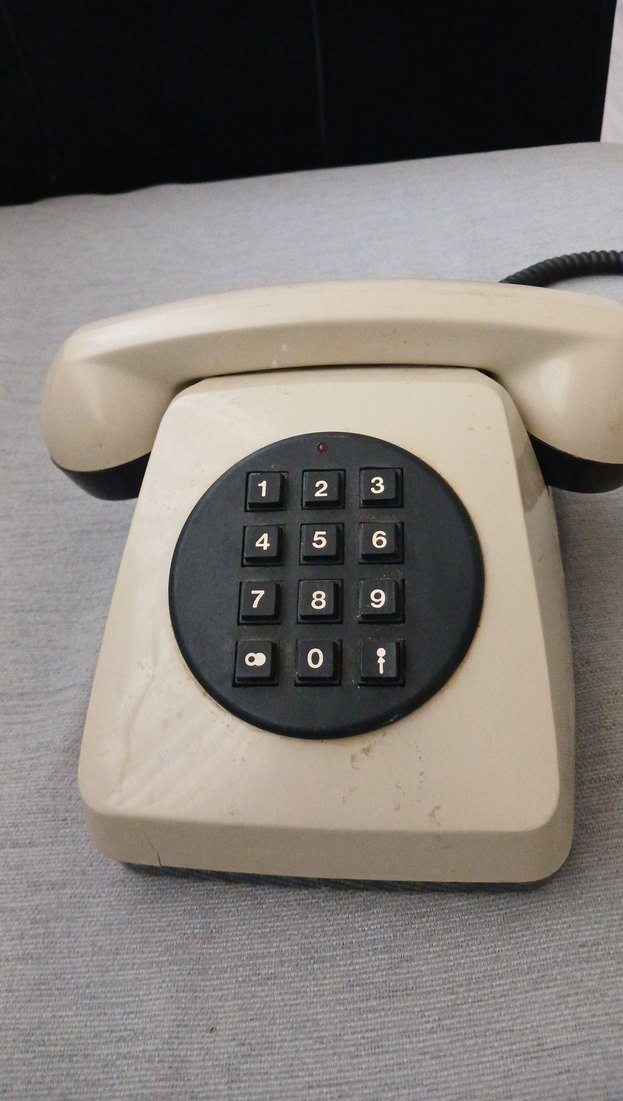 Gri ve beyaz renkte, tuşlu sabit telefon. Siyah tuşlarıyla basit ve kullanışlı tasarıma sahiptir. ☎️