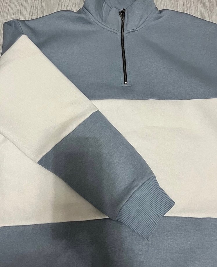 Gri Beyaz Yarım Fermuarlı Sweatshirt