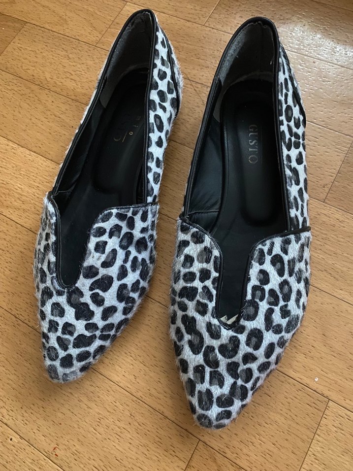 Mis gusto marka Gri beyaz zebra desenli, tüylü detaylı alçak topuklu kadın babetler. Tay derisi malzemeden yapılmıştır ve günlük kullanıma uygundur.