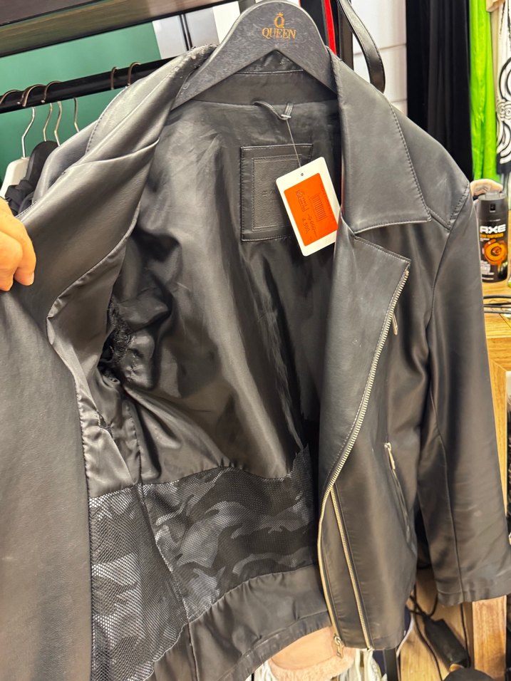 Gri renkli biker tarzı deri ceket, kesik yaka ve fermuarlı detaylara sahiptir. Normal uzunlukta, uzun kollu ve baskılı astarlı, günlük kullanım için uygundur.
