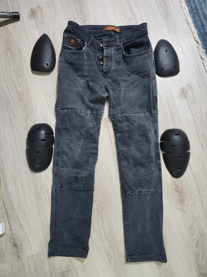 Gri renkli, biker stili erkek denim pantolon, regular fit ve tokalı detaylara sahiptir. Günlük kullanım için uygundur. ️32/32 Beden tertemiz diz ve kalça korumalı