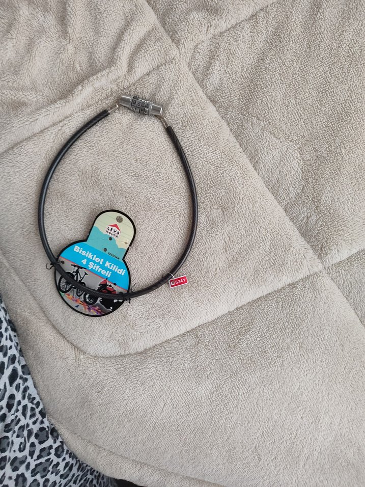 Gri renkte, şifreli bisiklet kilidi. Kompakt yapısı ile taşıması kolaydır.