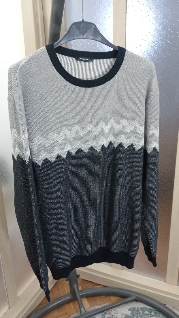 Bu erkek kazak, bisiklet yaka ve uzun kollu, örgü dokusuyla rahat bir görünüme sahiptir. Gri tonlarda, bol kesim ve günlük sokak tarzına uygundur.