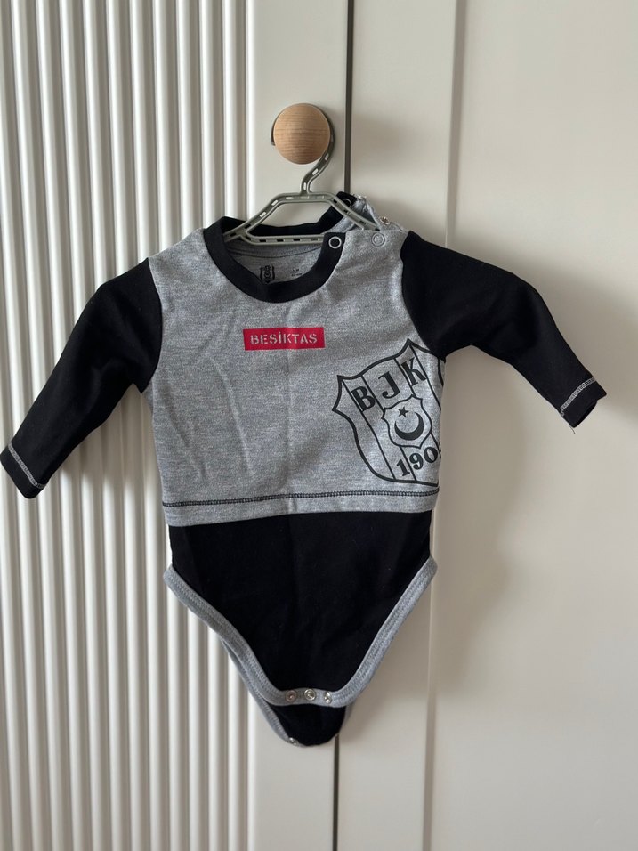 Gri BJK Baskılı Uzun Kollu Bebek Body Orjinal