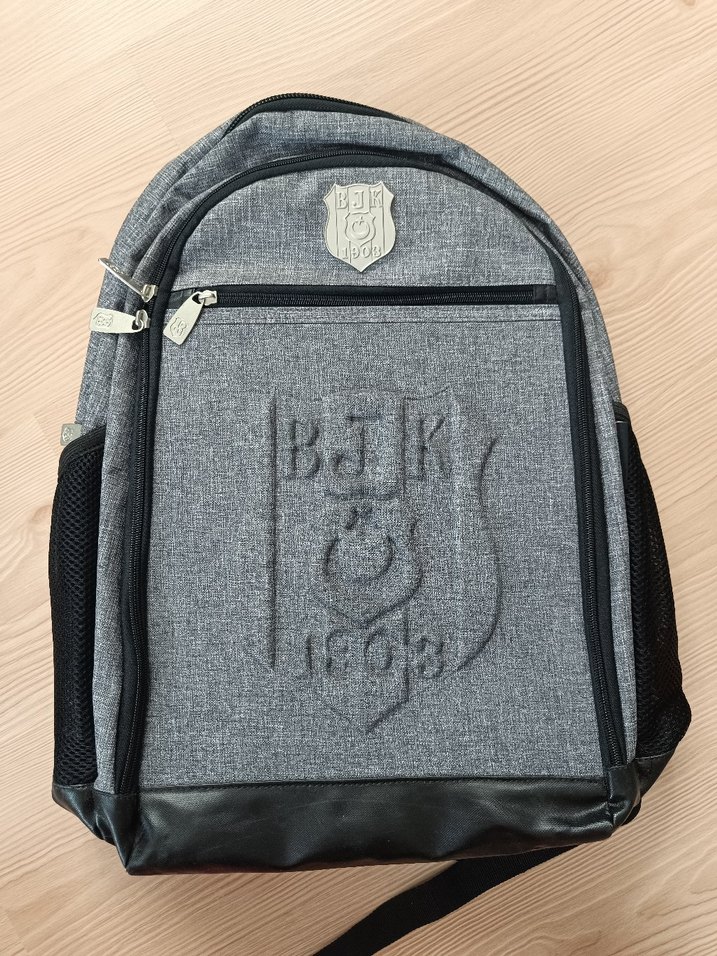Gri renkte, fermuarlı cepleri ve yanlarda file cepleri bulunan sırt çantası. Önünde kabartmalı amblem yer alır. kalitesi çok güzel. bir kez kullandık. ihtiyaç olmadığından satılık. eni 40 boyu 47 cm boş haliyle.