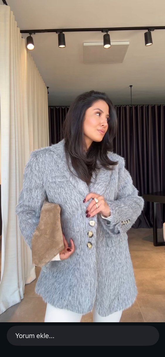 Gri blazer ceket butik ürünüdür oversize kalıptır Normal kesim ve uzun kolludur, günlük kullanım için uygundur.