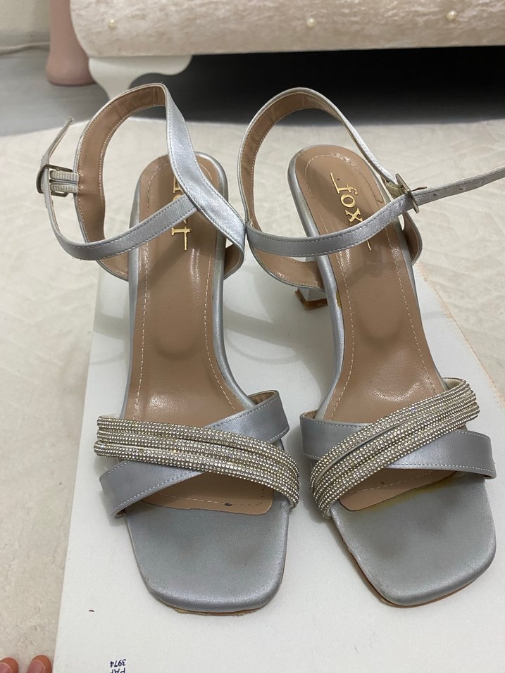 Gri yılan desenli, ipeksi dokulu blok topuklu kadın ayakkabı. Tokalı ve taş detaylı, düğünler için şık bir seçenek. 2 kez giyildi taşlarda düşme yok. Normalde 38 giyiyorum kalıbından dolayı 38 oldu 38-38,5 olanlar alabilir.