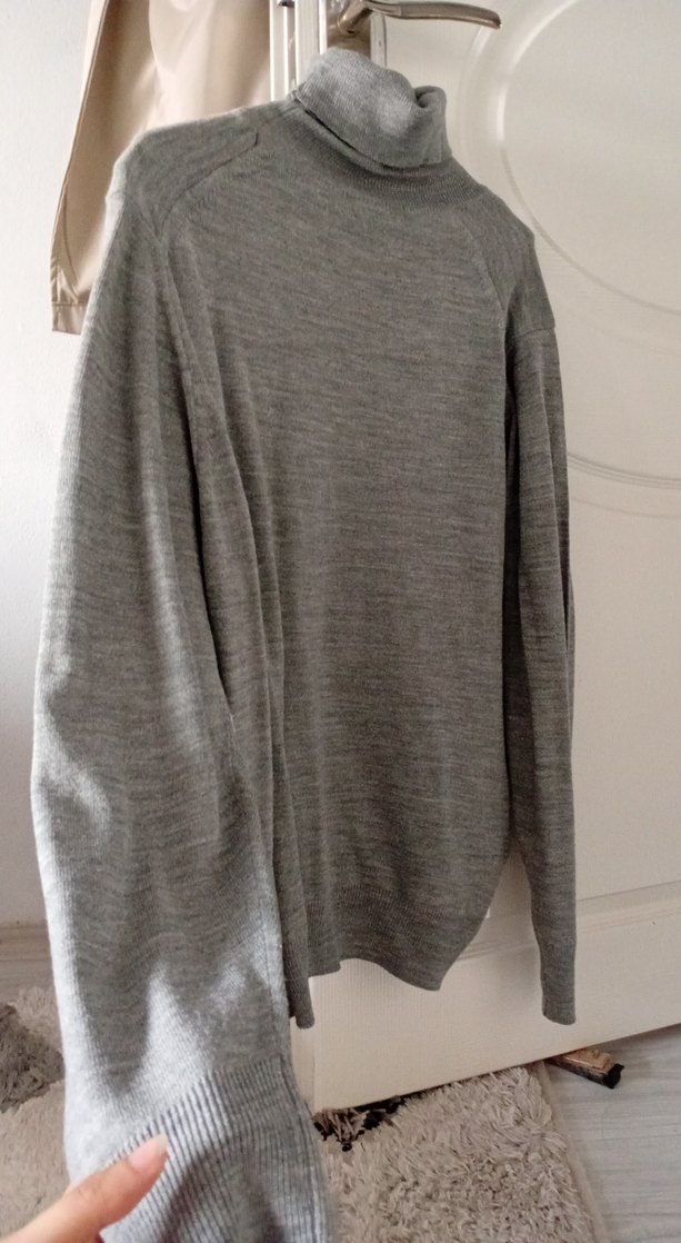 Gri renk, boğazlı, uzun kollu, rahat kesim kadın kazak. Günlük kullanıma uygun ve konforlu. boyun kısmında hafif tüylenme var görsellere ekledim