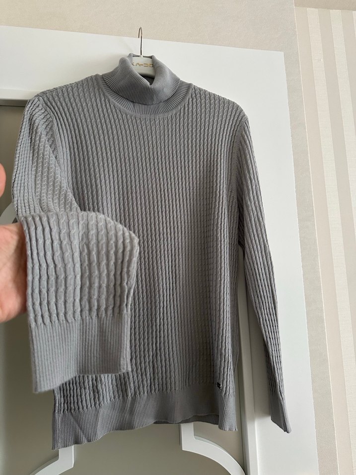 Gri renkli, boğazlı ve uzun kollu örgü erkek kazak. Rahat ve bol kesim, günlük kullanıma uygun sade tasarım. Avva marka yenidir.