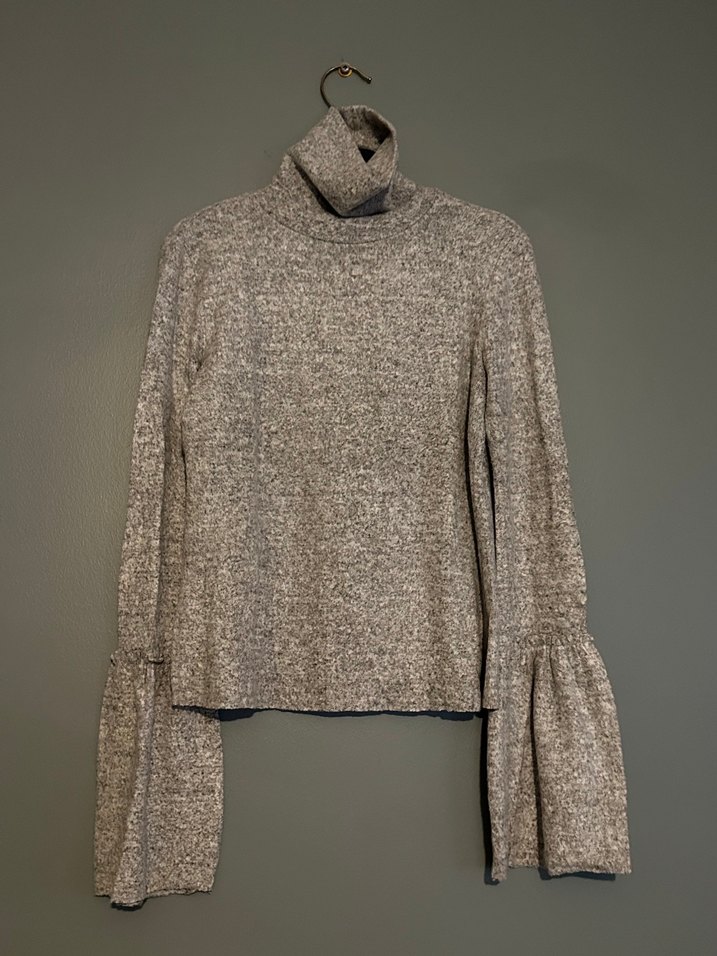 Boğazlı ve uzun kollu, gri örgü kadın kazak. Vücuda oturan kesimi ve midi boyu ile rahat ve şık sokak stili sunar.