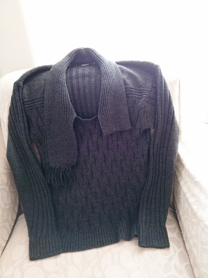 Gri renkli, örgü kumaştan yapılmış, boğazlı ve uzun kollu, vücuda oturan kadın kazak. Rahat ve günlük kullanıma uygun.