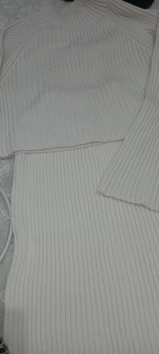 Gri Boğazlı Uzun Kollu Kadın Kazak ve etek