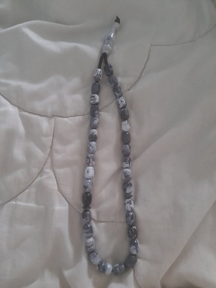 Gri bohem ebruli stilde, mermer desenli minimalist erkek tesbih. Sade ve şık kullanım için uygundur.