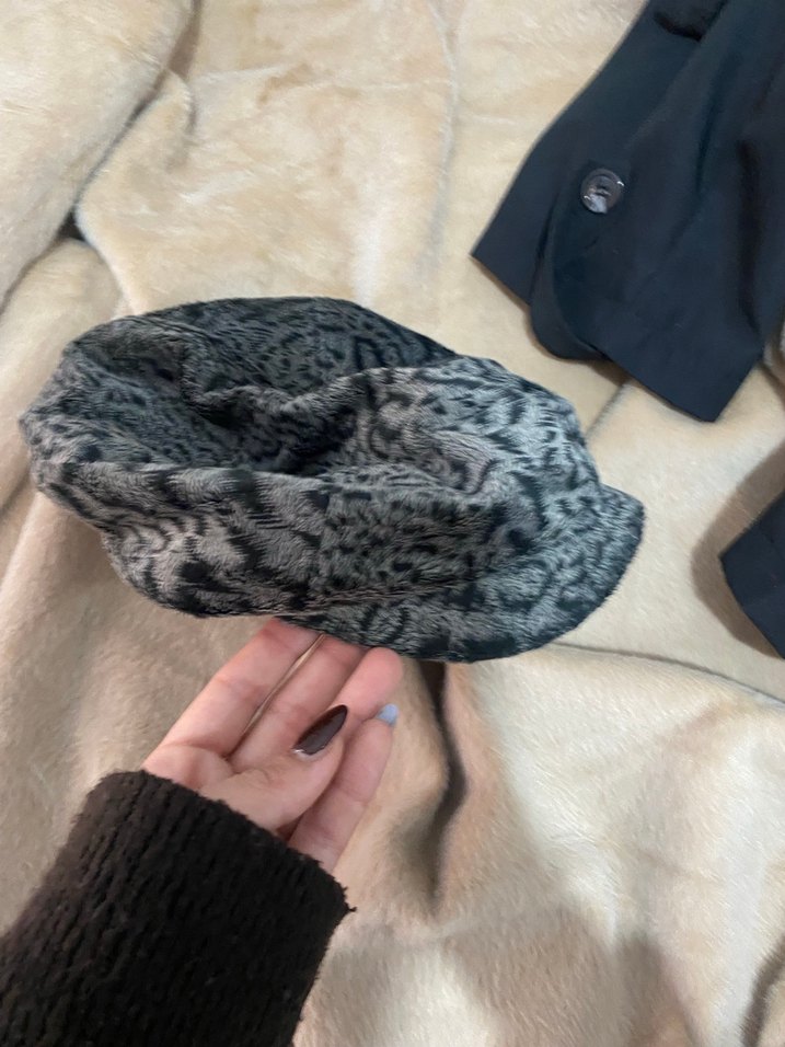 Yumuşak sentetik kumaştan yapılmış, kürk detaylı gri kadın şapkasıdır. Bohem ve rahat bir tarz sunar.