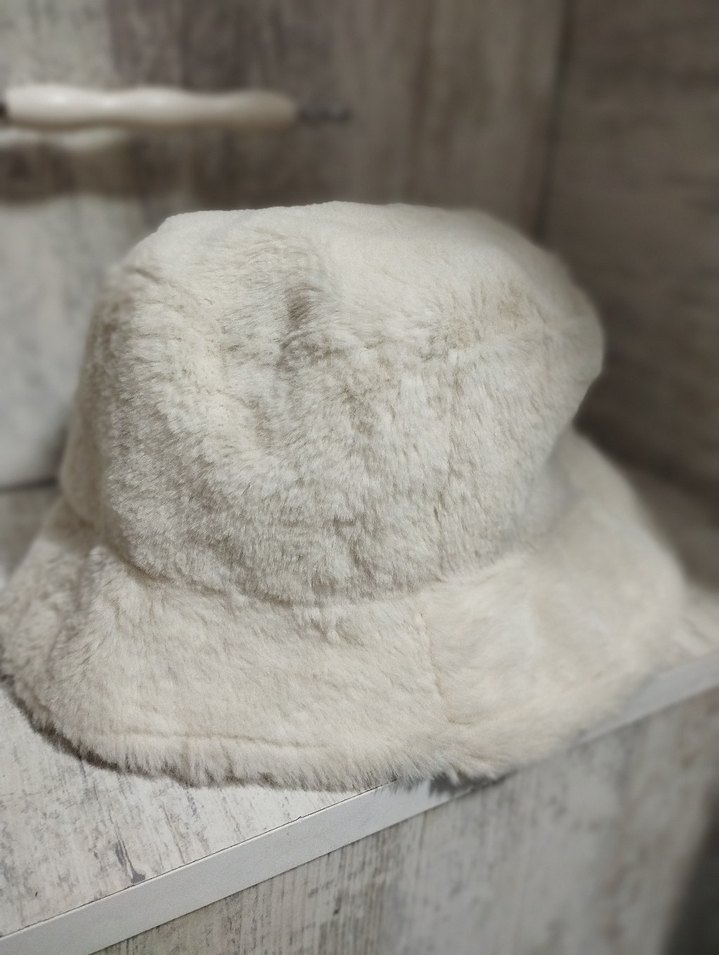 Yumuşak ve rahat kumaştan, kürk detaylı, bohem tarzda gri kadın şapka. Retro ve hippie dokunuşu vardır.