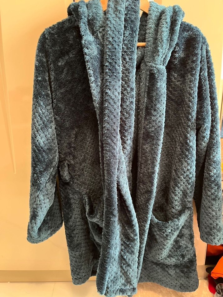 Gri renkte, uzun kollu ve bol kesim sabahlık. Yumuşak dokulu kumaştan, midi boyda, cepli ve bohem tarzda rahat bir model. ️